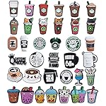 36 PCS Coffee , Cute Boba Croc Charms for Boys Girls, PVC Food Croc Charms Designer Croc Charms Shoe Decoration Charms…