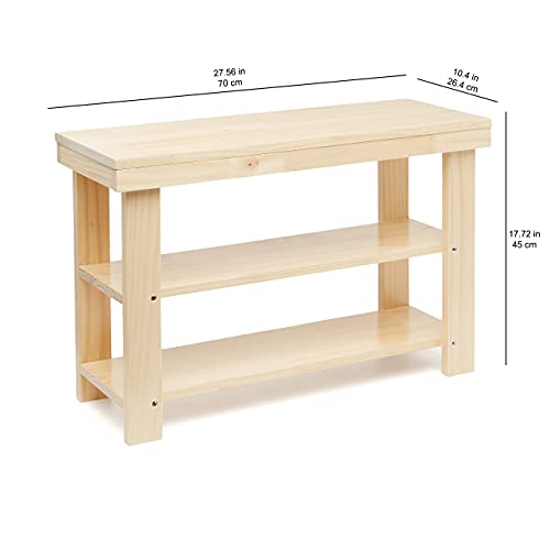 Includes 1 shoe rack bench made of 100% solid pine with a Natural finish