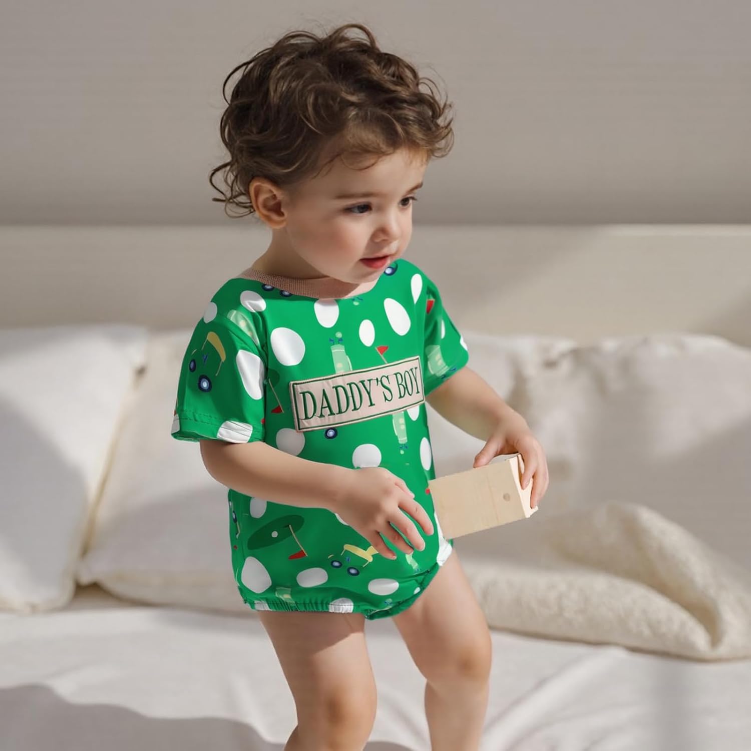 Baby Boy Golf Outfits Short Sleeve Round Neck Daddys Boy Letter Embroidery Golf Print Romper Newborn Playsuit