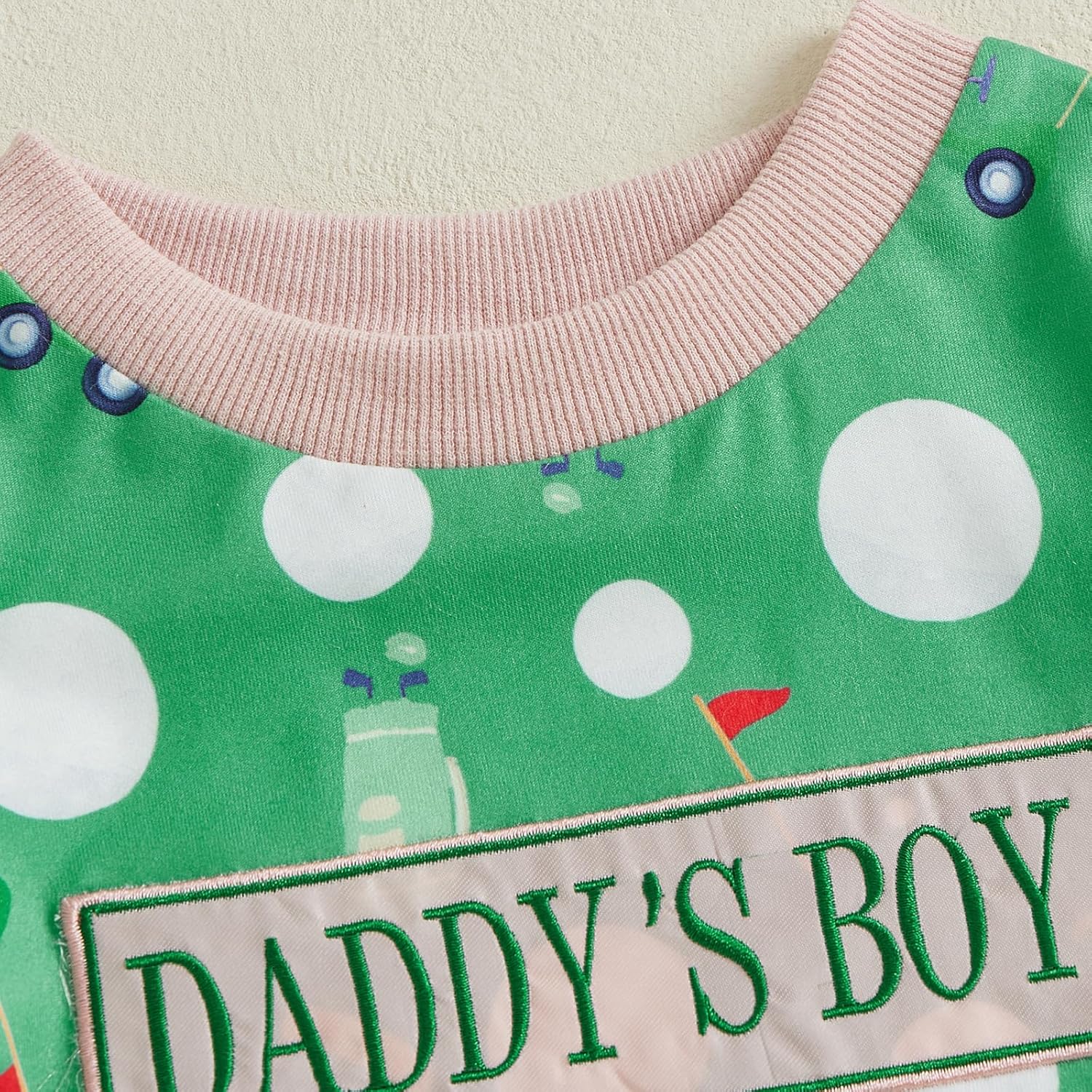 Scloutarry Baby Boy Golf Outfits Short Sleeve Round Neck Daddys Boy Letter Embroidery Golf Print Romper Newborn Playsuit