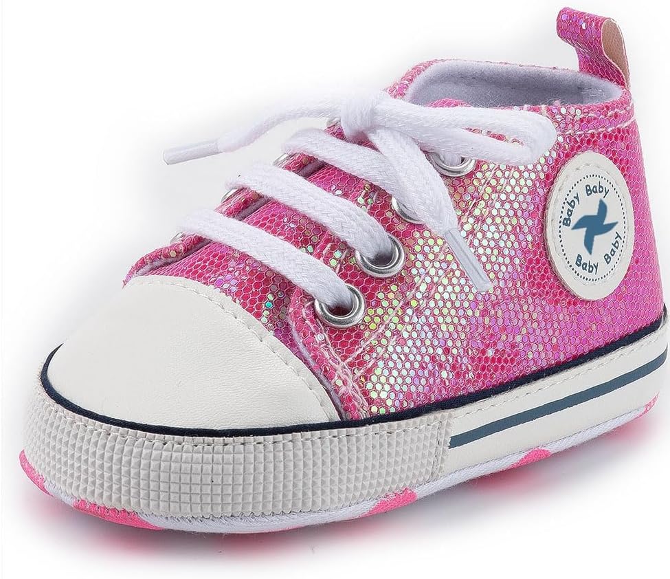 Customers find these baby shoes cute, with one mentioning they look like Converse, and appreciate their fit, with one noting they’re wide enough for 6-month-old feet. They are particularly suitable for infants and 1-year-olds, and customers find them soft and good value for money. The color variety receives positive feedback. The quality and slip resistance receive mixed reviews – while some say they’re well-made and stay on the feet, others find them poorly made and not anti-slip.