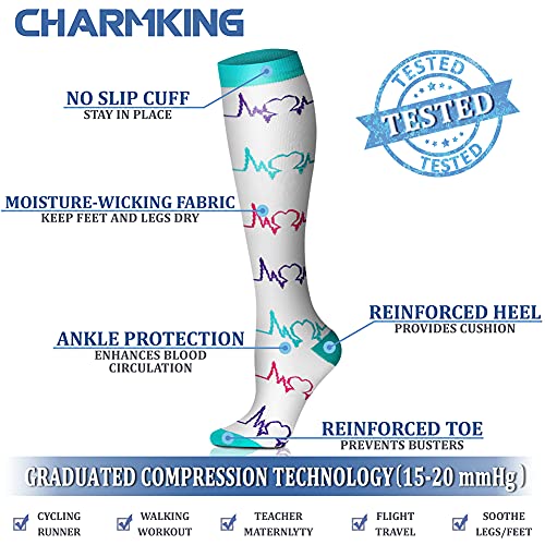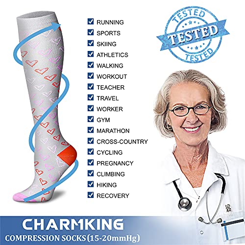 CHARMKING Compression Socks for Women & Men (6 Pairs) 15-20 mmHg is Best for Athletics, Running, Flight Travel, Support