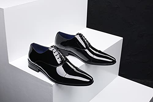 DECARSDZ Men’s Faux Patent Leather Classic Lace-up Formal Oxford Tuxedo Dress Shoes