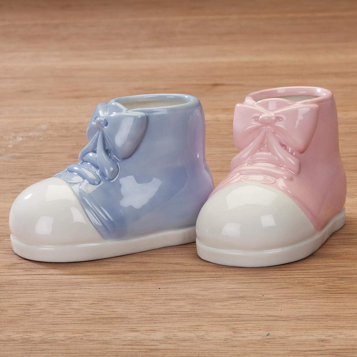 Celebrating your precious new arrival, this cute Baby Bootie becomes a sweet keepsake. Beautifully designed to cherish for a lifetime, the exclusive ceramic baby bootie shines in classic blue or pink and is lovingly detailed all around in heirloom style. 4″ long x 2 1/8″ wide x 2 5/8″ high.