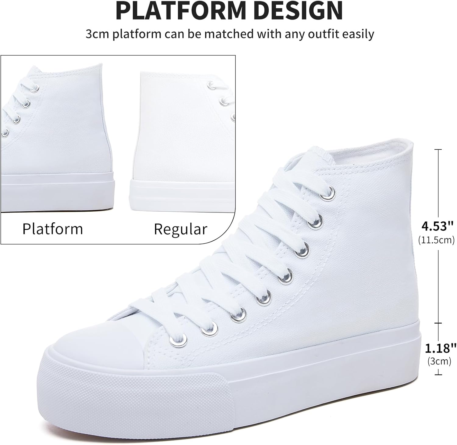 High top platform shoes for women with 1.18 inch Platform.Womens platform shoes are made of breathable canvas upper and soft Synthetic Sole.Womens classic canvas sneakers are easy to match.