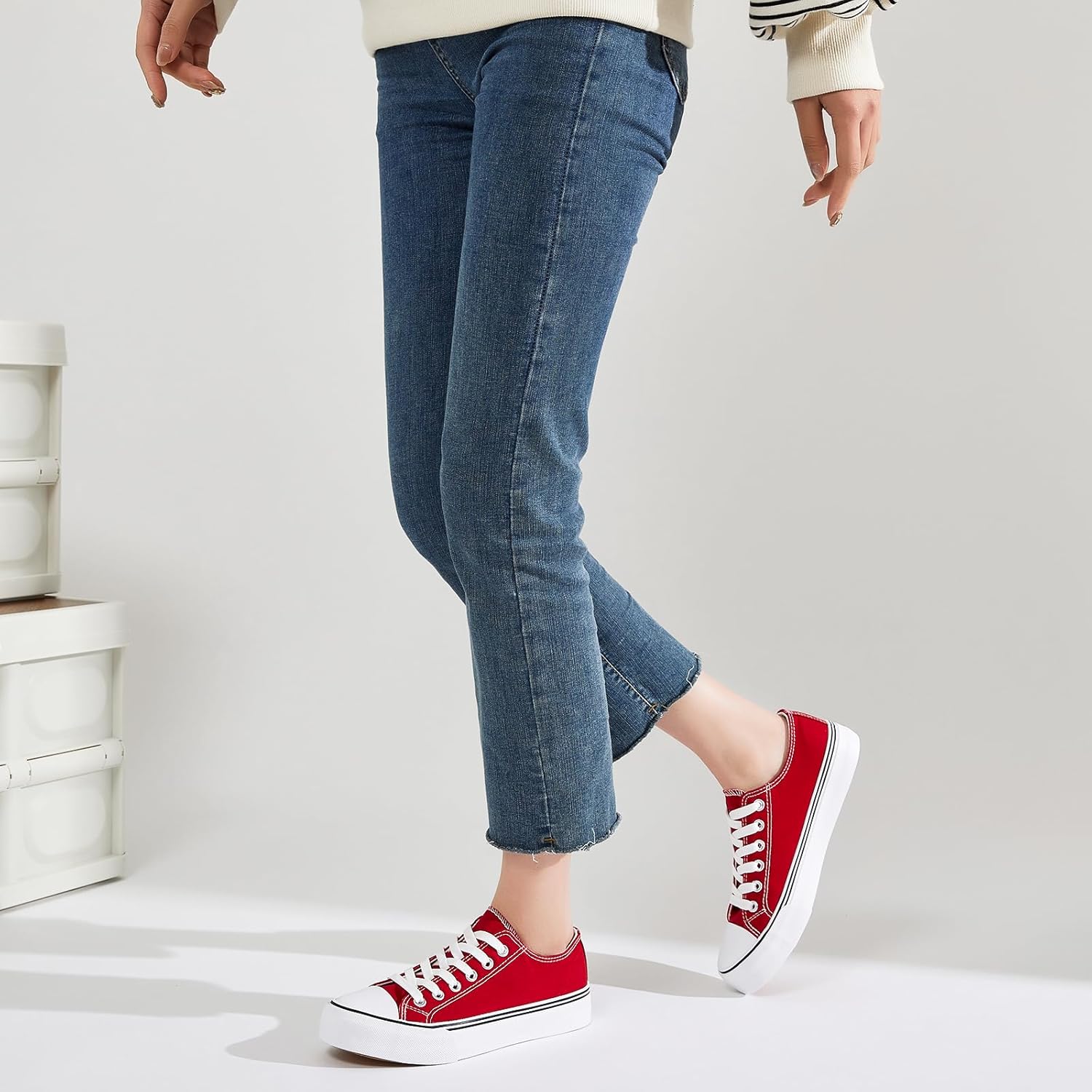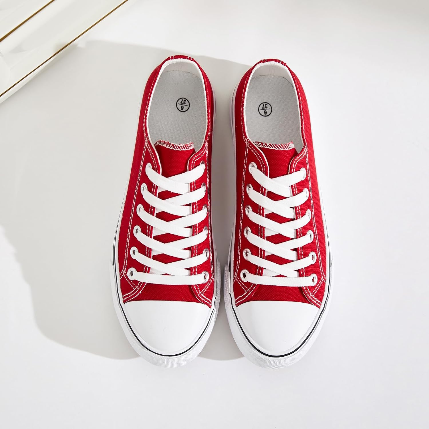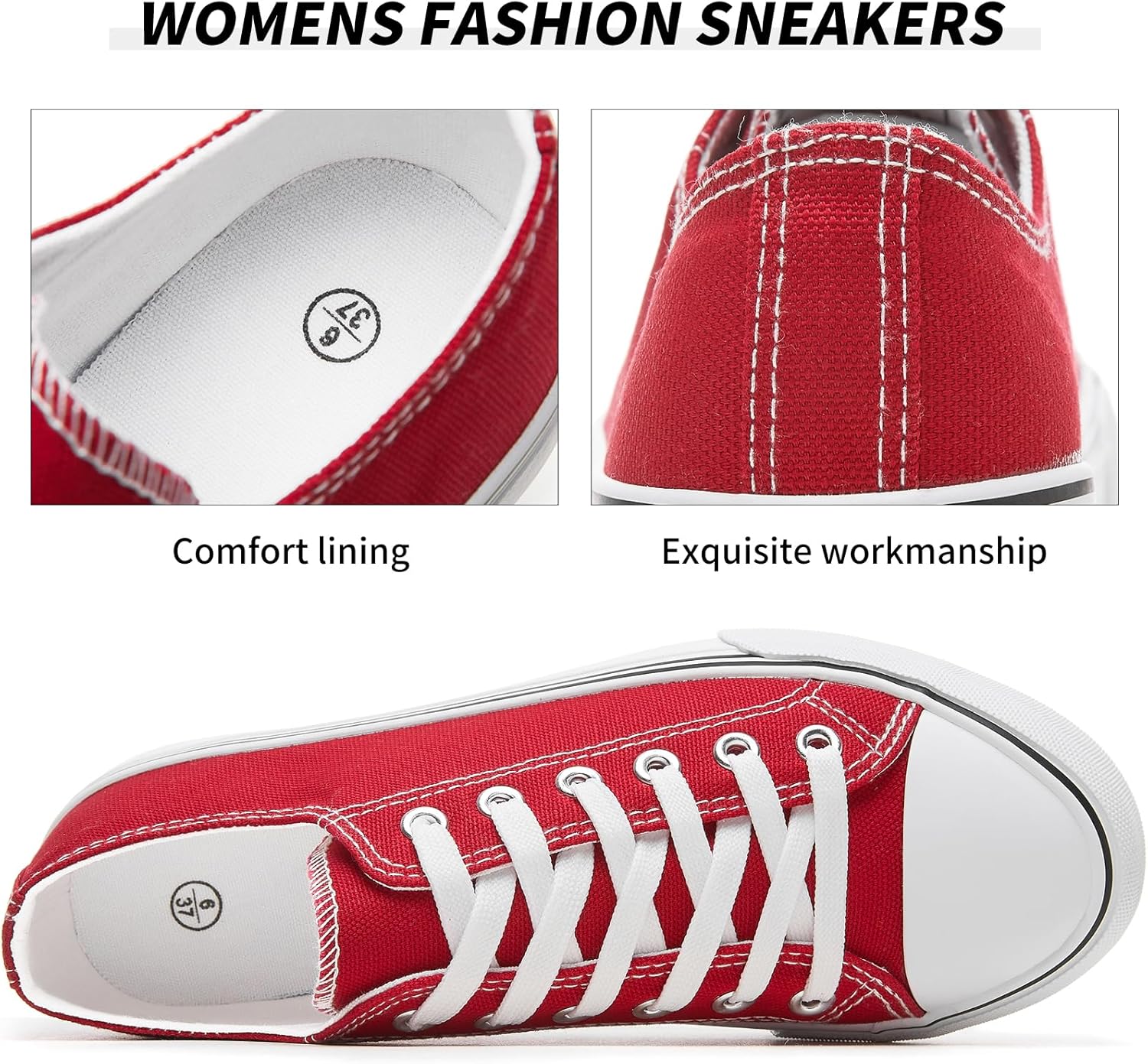 FRACORA Womens White Canvas Sneakers Low Top Lace Up Canvas Shoes Fashion Comfortable