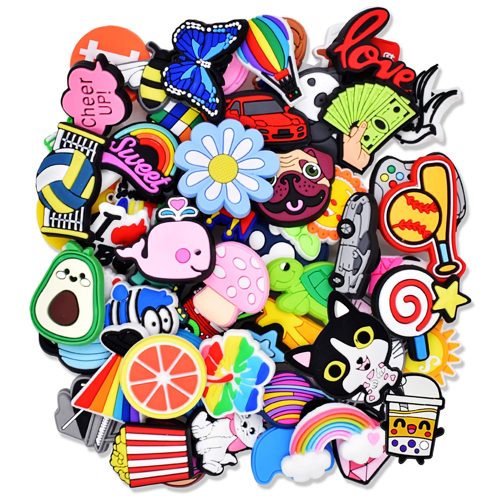【Package include】: you will receive 50pcs different Random shoe charms.