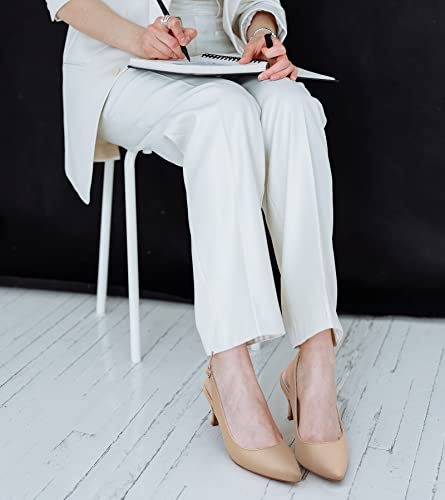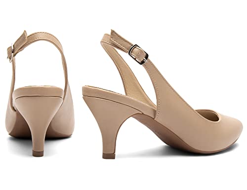 Greatonu Women’s Slingback Kitten Heel Pointed Toe Dress Pumps Shoes