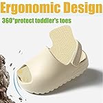 ✅ [Anti-bump toe Design ] : This kids slippers upper with anti-collision and a breathable open-toe design, thick EVA sole with zigzag shape, it not only looks lovely and fashion, also 360°protect toddler’toes from accidentally hitting by sharp surfaces such as table feet! Toe to the tail is slightly upturned by 15°,the fitting angle balances the pressure, designed using high quality EVA,environmentally friendly, non-toxic, that increase flexible and durable,not easy to break.