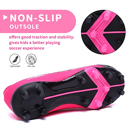 Strong Outsole For Youth Soccer Cleats: Our outdoor & indoor soccer shoes flexible rubber outsoles and feature rugged studs to aid with traction on turf and outdoor fields, gives kids a better playing soccer experience.