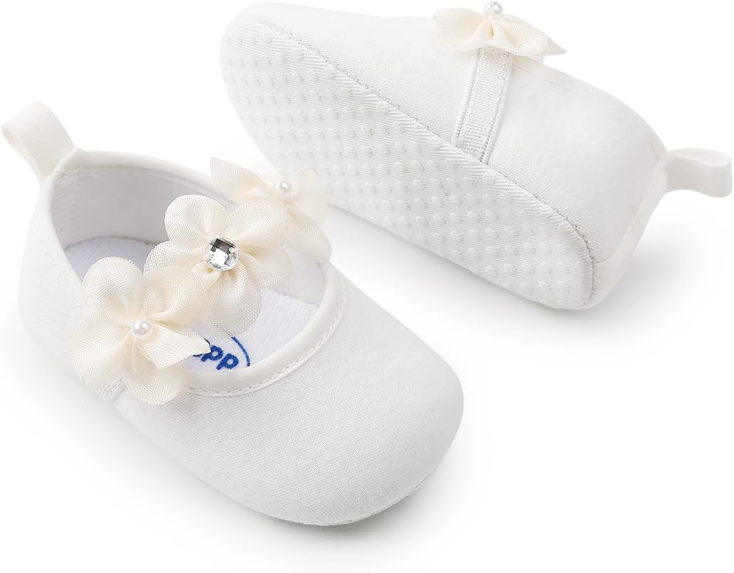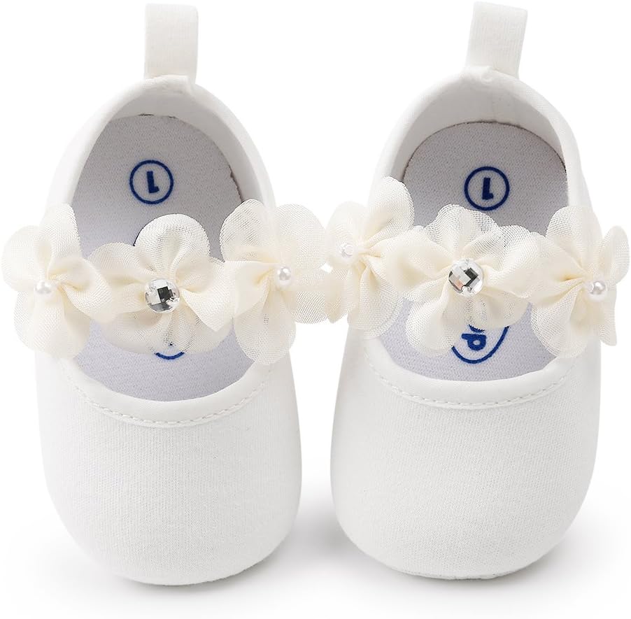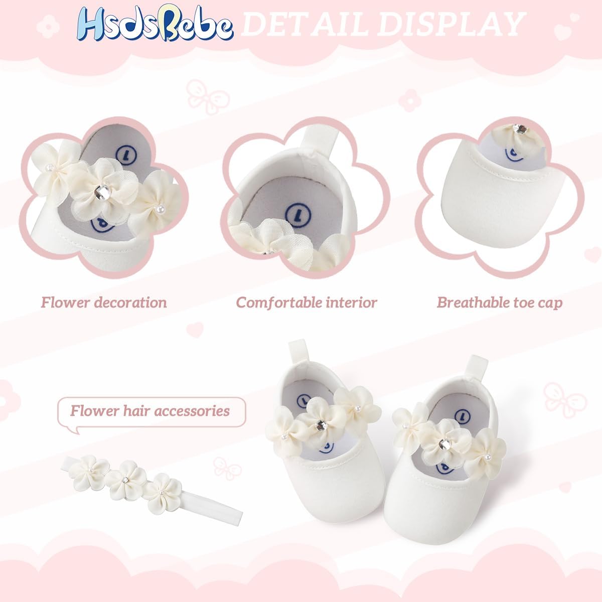 HsdsBebe 2pcs/Set Newborn Baby Girl Princess Mary Jane Shoes Toddler Infant Wedding Dress Flat Shoes with Free Headband