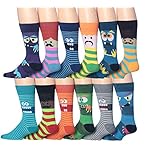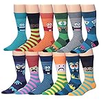 JAMES FIALLO Mens 12-Pairs Funny Funky Crazy Novelty Colorful Patterned Dress Socks