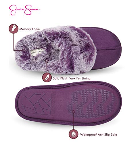 Jessica Simpson Girls Comfy Slippers – Cute Faux Fur Slip-on Shoes Memory Foam House Slipper