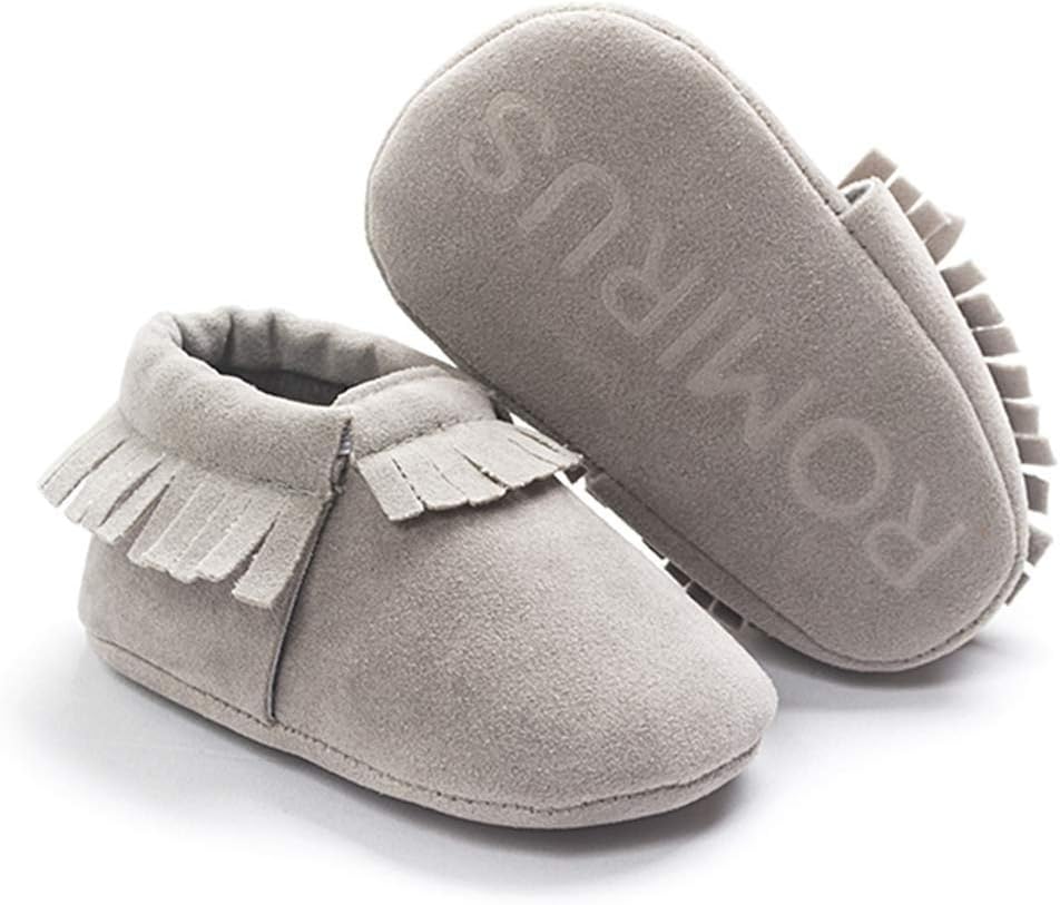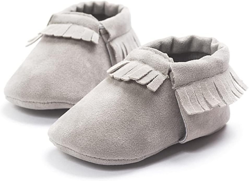 Customers find these moccasins cute, easy to put on and take off, and consider them good value for money. However, the sizing and quality receive mixed feedback – while some say they fit perfectly for babies, others find them too big, and while some praise the quality, others describe them as low quality. Moreover, the material quality is concerning, with customers noting they feel like cardboard and are not real leather or suede. Additionally, the slip resistance is a concern, with one customer mentioning the lack of grip on the bottom.