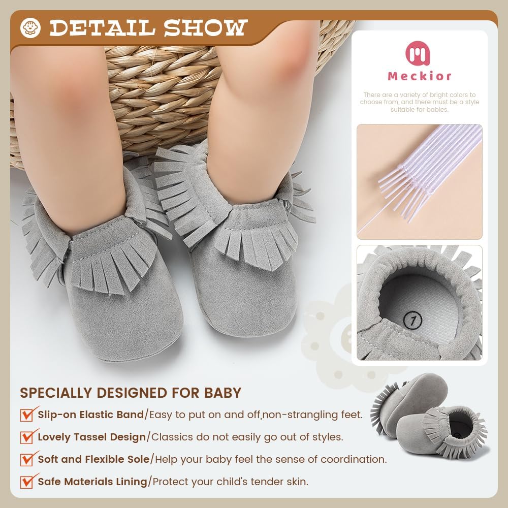 Meckior Infant Baby Girls Boys Premium Soft Sole Tassel Bowknot Moccasins Toddler Prewalker Princess Anti-Slip Crib Baptism Loafers Shoes