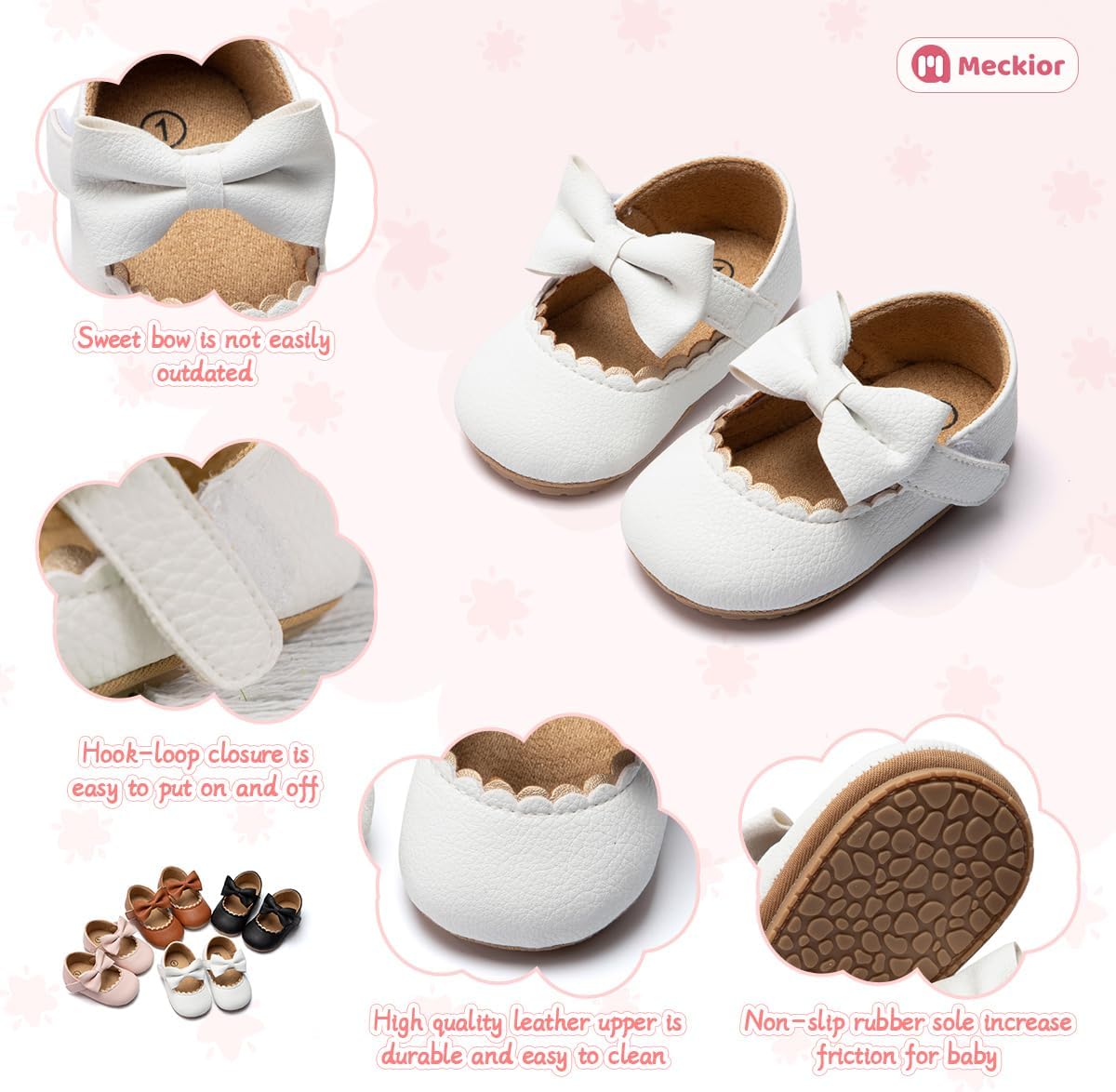 Meckior Infant Baby Girls Soft Sole Bowknot Princess Wedding Dress Mary Jane Flats Prewalker Newborn Light Baby Sneaker Shoes