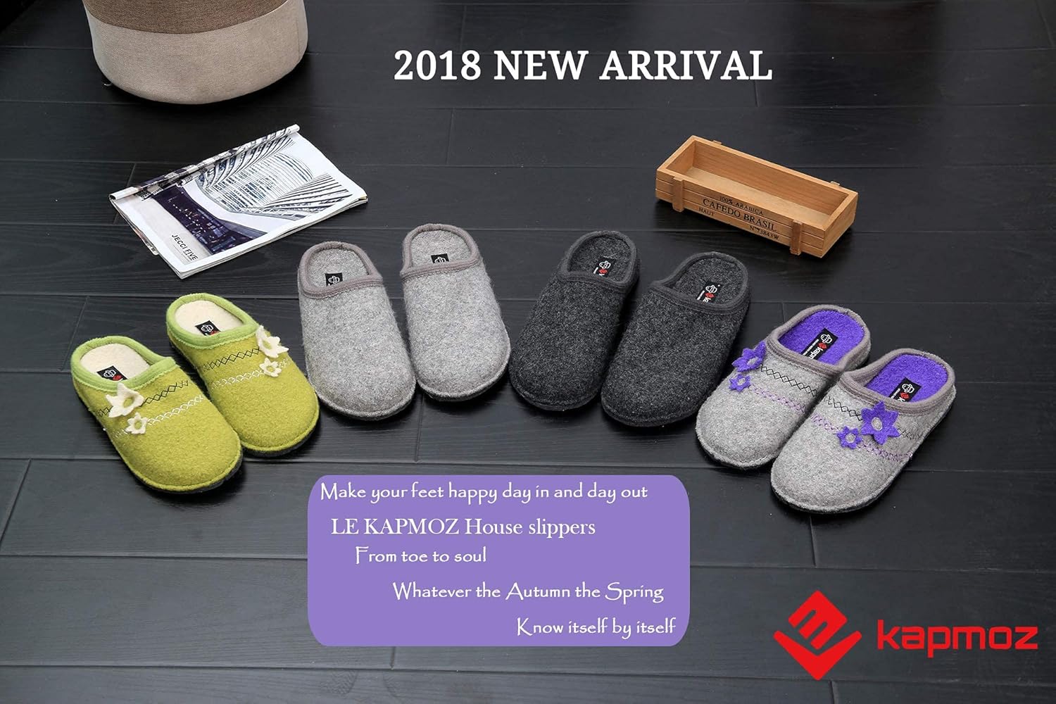 – LE KAPMOZ indoor slippers are lightweight, supportive, super-comfy.- Thanks to the boiled wool material, the house slippers are naturally warm yet dry, odor absorbing!- They are naturally odor-resistant, and never irritating, even against bare feet.- They have the built-in heel cup & arch support latex footbed and the flexible & slip resist outsole, their close fitting construction makes the slippers stayed on your feet while walking up and down stairs.-This indoor slipper without the obnoxious problem of dirt getting trapped between fibers deep in the fleece pile, easy to clean by hand or machine, as well as stays nicer for longer.
