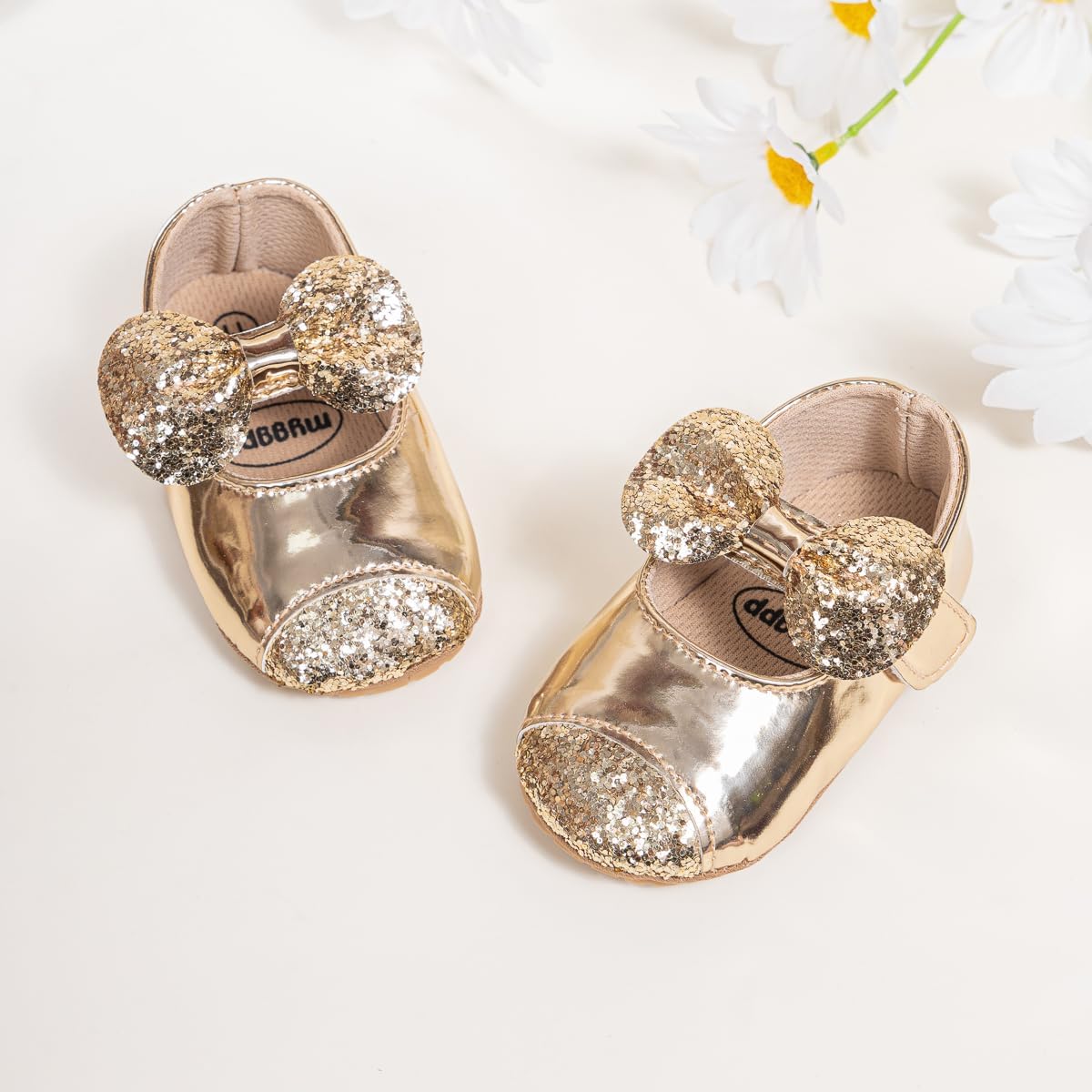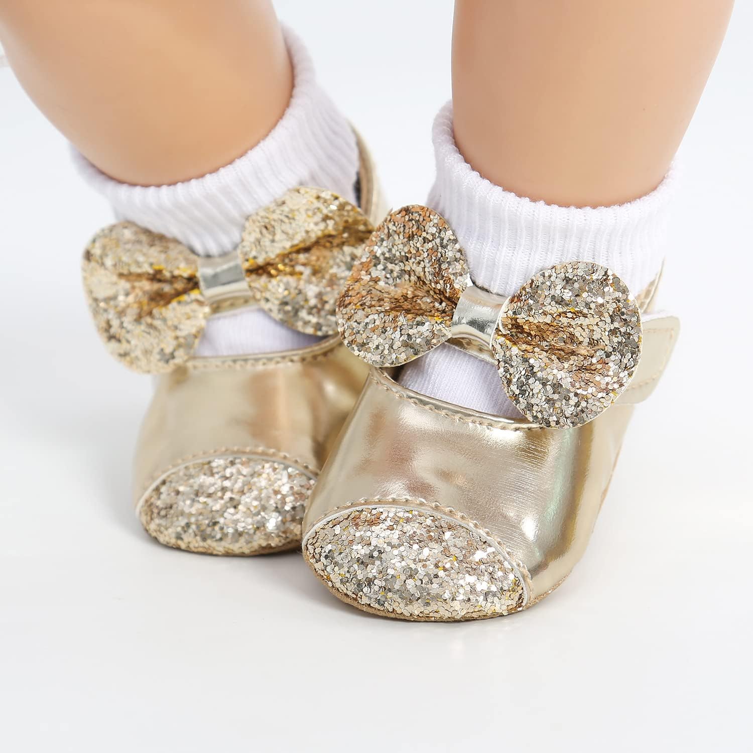 ohsofy Infant Baby Girls Mary Jane Flats Non-Slip Bowknot Princess Wedding Dress Shoes Toddler Crib Shoes