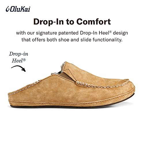 OLUKAI Moloa Slipper Men’s Slippers, Premium Nubuck Leather Slip On Shoes, Shearling Lining & Gel Insert, Drop-In Heel…