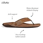OLUKAI Tauhine Men’s Beach Sandals, Quick Dry Flip-Flop Slides, Waterproof Full-Grain Leather & Wet Grip Soles, Soft…