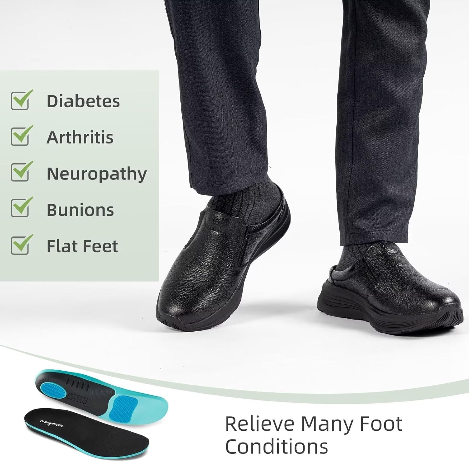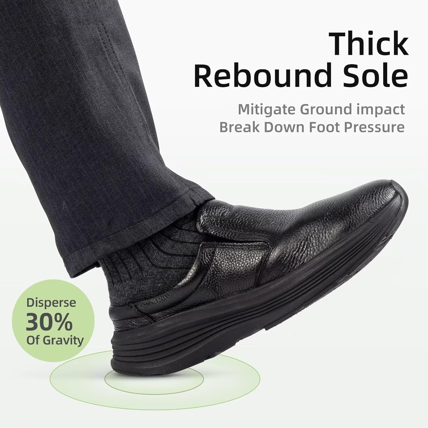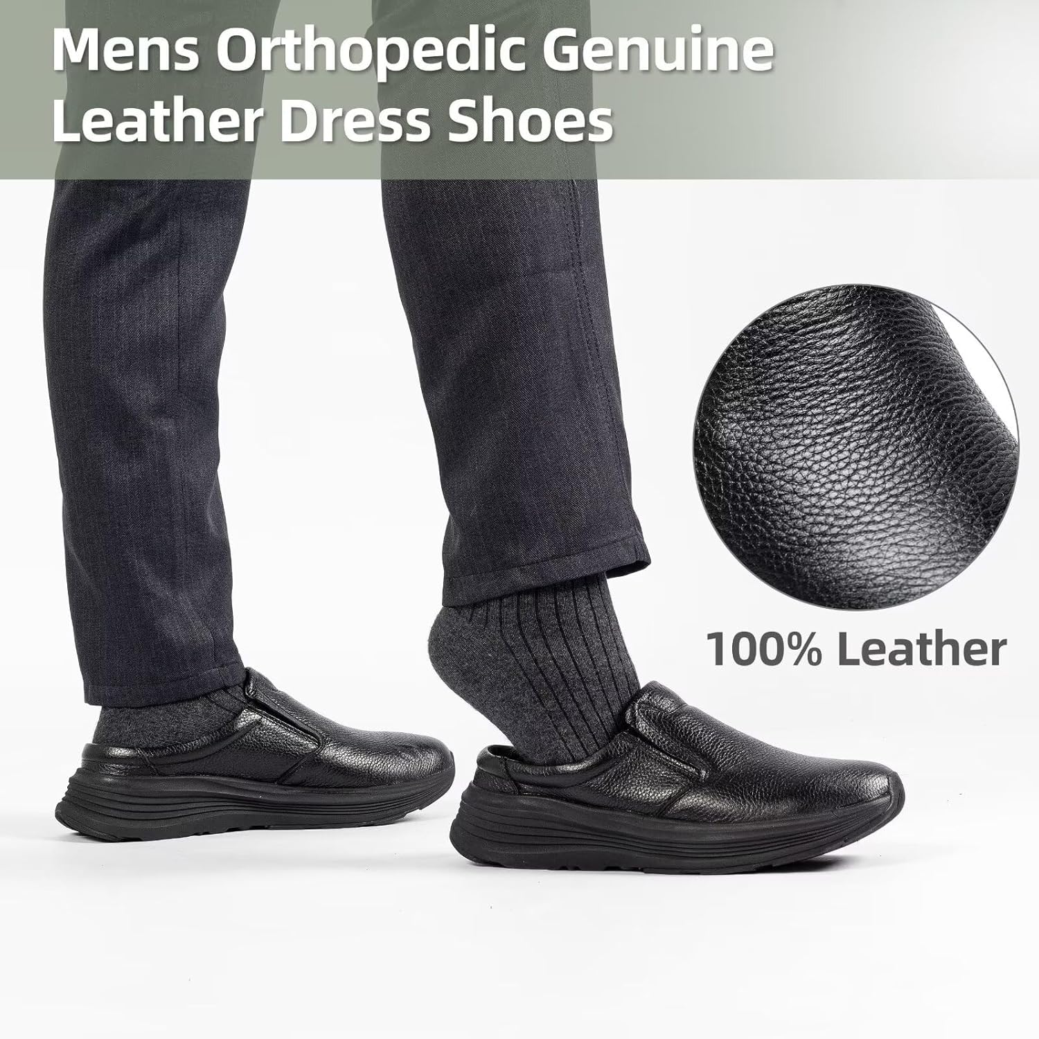 OrthoComfoot Men’s Orthopedic Leather Dress Walking Shoes: Comfortable Arch Support Slip-Ons Loafers for Plantar Fasciitis, Casual Business Orthotic Slippers for Foot and Heel Pain Relief