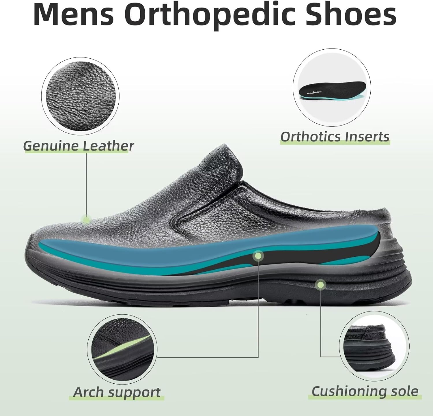 OrthoComfoot Men's Orthopedic Leather Dress Walking Shoes: Comfortable Arch Support Slip-Ons Loafers for Plantar Fasciitis, Casual Business Orthotic Slippers for Foot and Heel Pain Relief