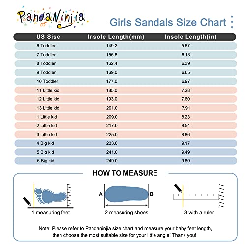 CHOOSE THE MOST SUITABLE SIZE: We offer our size chart in the last pictures to ensure that you could choose the perfect sandal size for your little princess. Please measure your little girl’s feet length and refer to our size chart to get the right size. If you have any questions, please feel free to contact us. We are always here!