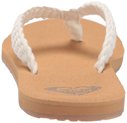 Contoured, molded footbed with brushed texture and Roxy graphic