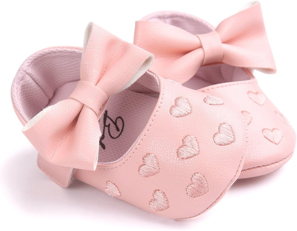 RVROVIC Baby Girls Shoes Soft Sole Mary Jane Flats Princess Dresses Shoes PU Cute Bow Prewalker