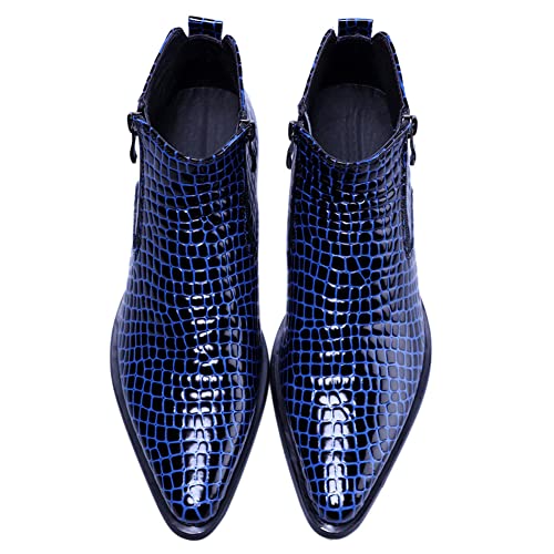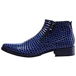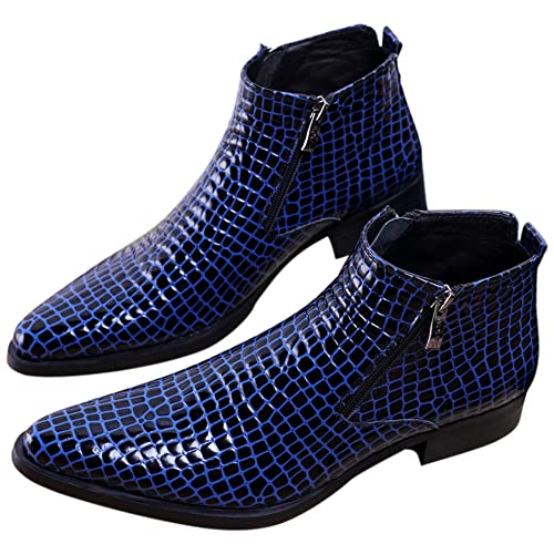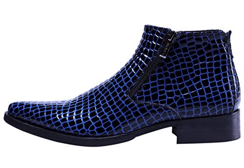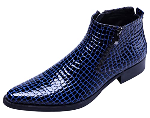 SANTIMON Men’s Ankle Patent Leather Fashion Plaid Zipper Pointed Toe Casual Boots