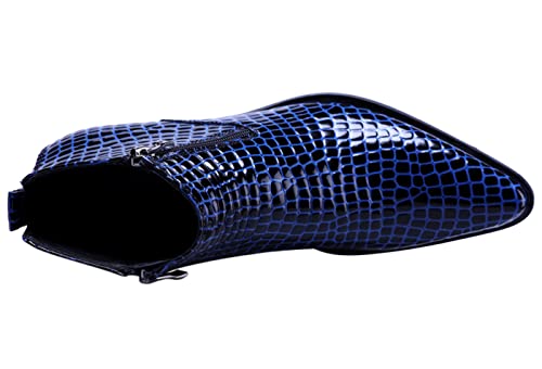 SANTIMON Men's Ankle Patent Leather Fashion Plaid Zipper Pointed Toe Casual Boots