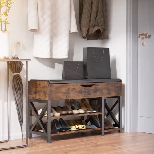 astimey Shoe Bench Entryway Bench Shoe Rack Organizer for Entry, Bedroom, Closet, Living Room, Hallway, Industrial (Blue…