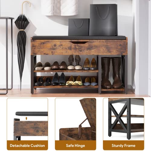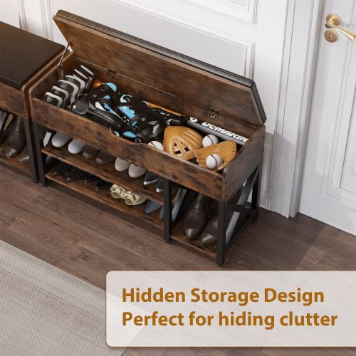 【Lift Top Hidden Storage】Shoe storage bench with a lift top storage design provides space for storing small items and protects your entryways from disorder the safe and strong hinges can keeping this storage up so that you don`t have to hold it with your hand ; gently open the cushion can be fixed, sturdy support points to avoid pinching hand.