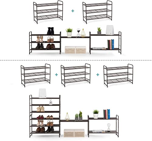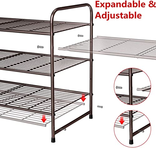Simple Trending 3-Tier Stackable Shoe Rack, Expandable & Adjustable Shoe Shelf Storage Organizer, Wire Grid, Bronze