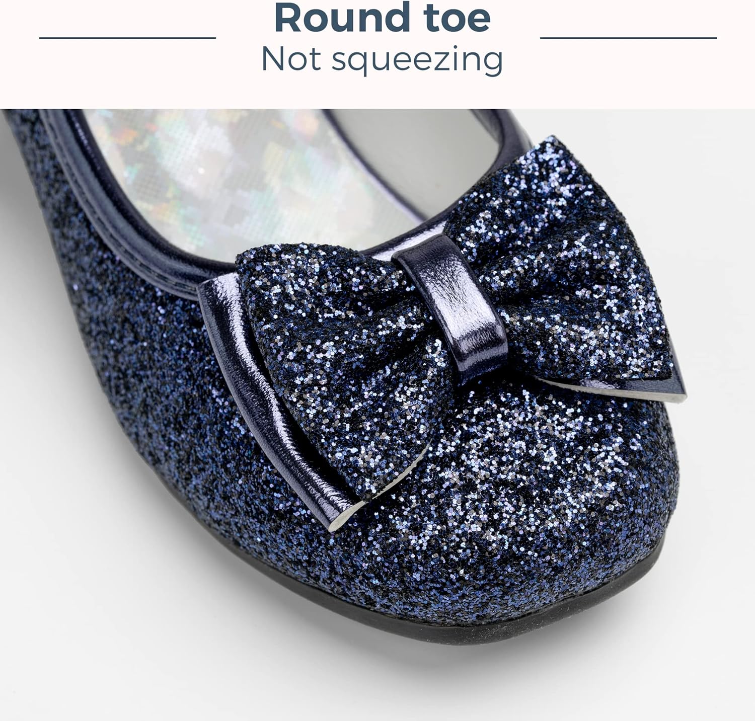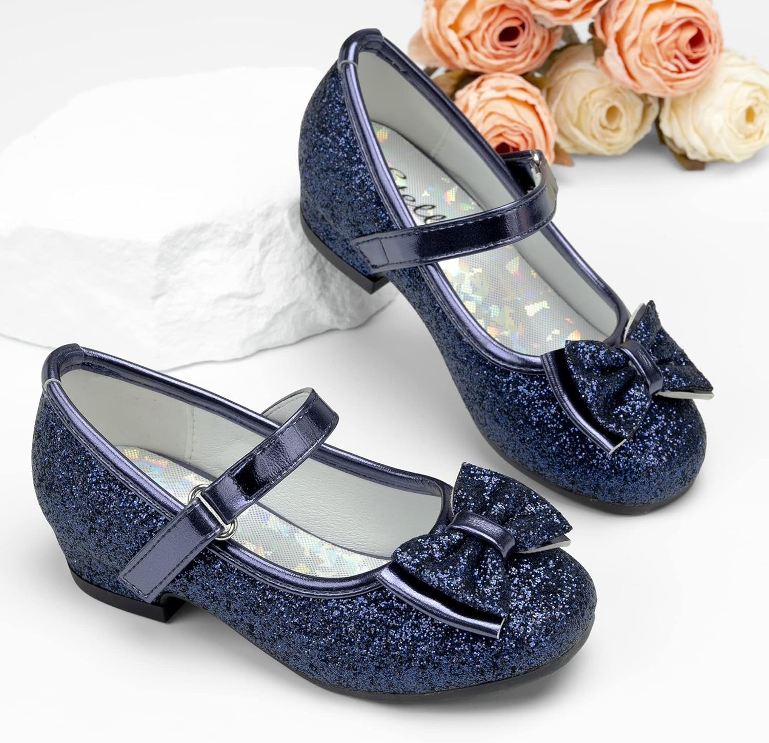 Stelle Girls Dress Shoes Glitter Princess Shoe Flower Mary Jane Low Heels Party Wedding Prom Footwear for Toddler Kids