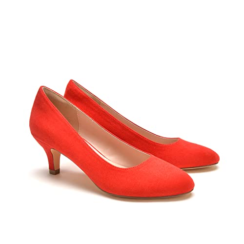 SVDSPHDE Women’s Kitten Low Heels Dress Shoes Round Toe Slip On Pumps