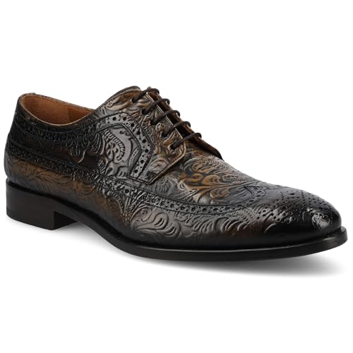 The Preston Shoe in Oro Viejo from TAFT is where timeless class meets a touch of daring, crafted from rich full-grain Spanish calfskin leather, a handcrafted embossed floral, and an intricate brogue detailing. Its almond-toe silhouette and lace-up design offer a refined yet bold charm, perfect for the modern gentleman. Handmade by artisans in Spain, this shoe is more than just footwear—it’s a conversation starter wrapped in old-world craftsmanship.
