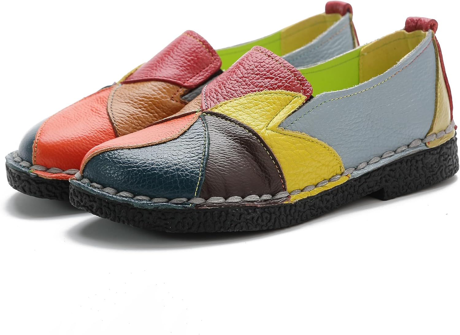 Trsorini Women Casual Loafers Shoes Comfortable Multi Color Stitching Leather Slip on Shoes for Lady Soft Sole Flat Driving Walking Dress