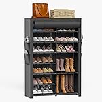 Shoes Rack with Cover — This closet shoe organizer comes with a highly quality dustproof cover with zipper to keep dust off your shoes and stuff, and there is a velcro so you can roll up the curtain for easy access or storage. Moreover, the cover is designed with side pockets where you can collect your keys, cards, purses, shopping bags, etc.