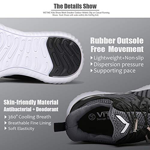 【Boys shoes material】The shoes has stretch mesh upper for a optimal breathable,lightweight feel.Quickly absorb sweat and drying friendly mesh uppers,make feet cool and dry.Don’t crease and easy to clean.