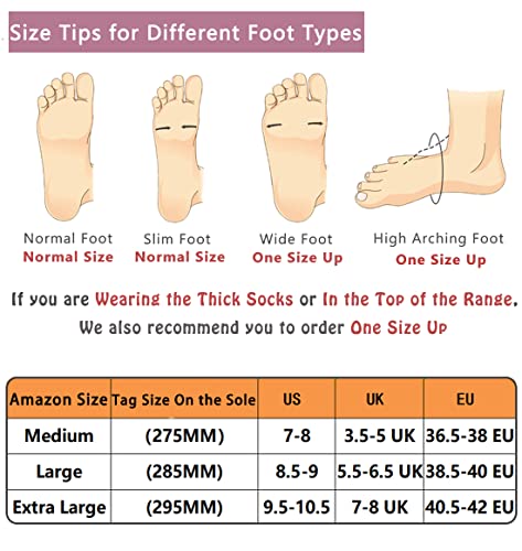 SIZING: Available in size Medium(7-8 B M US), Large(8.5-9 B M US), Extra Large(9.5-10.5 B M US).Slipper is narrow in width, if you have wide feet we recommend buying one size up.Please IGNORE the size number at the bottom of the sole.It’s manufacture size,not on behalf of US size.Please refer to the size menu at the second product picture