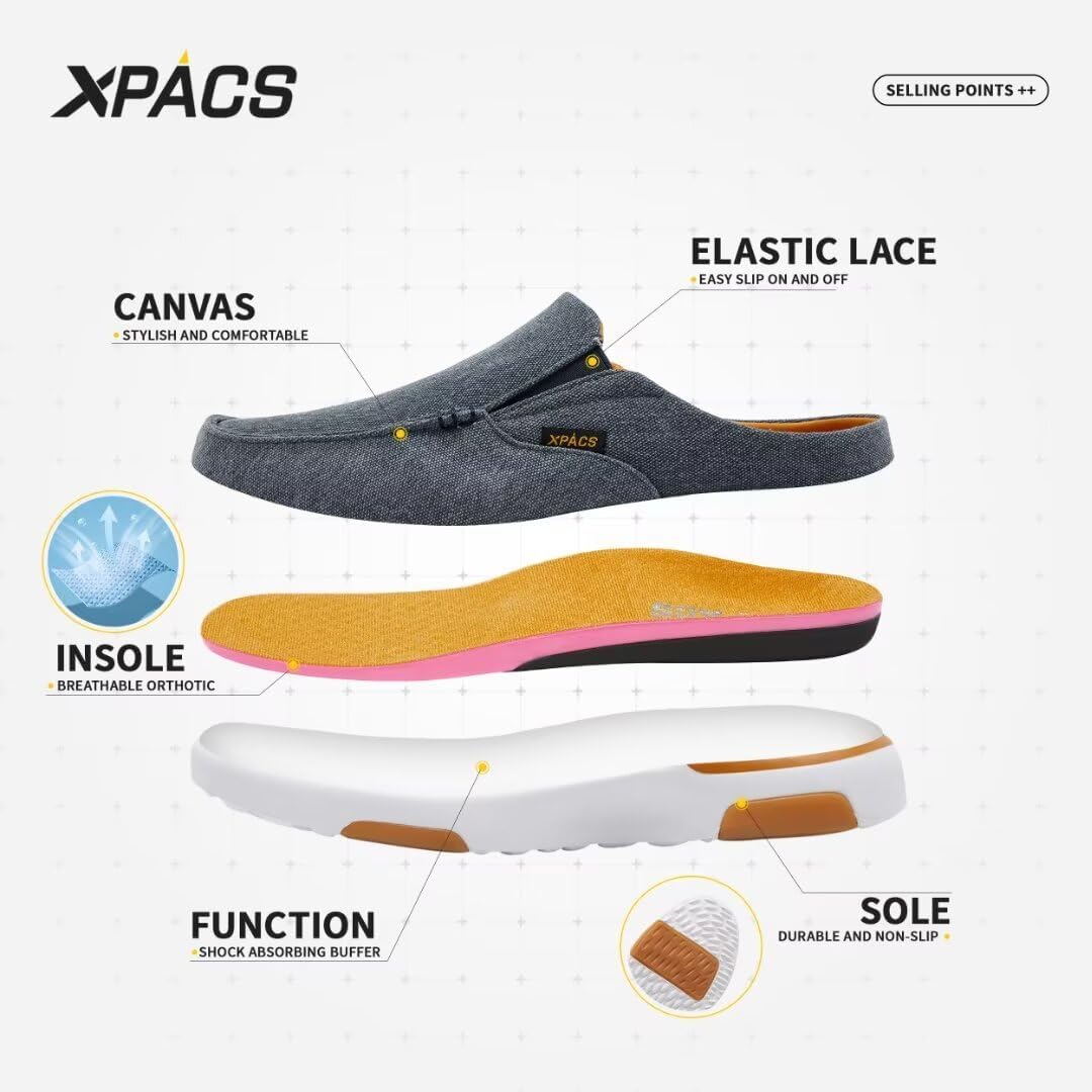 XPACS Men’s Orthopedic Comfy Slippers, Stylish Arch Support Casual Shoes for Plantar Fasciitis Recovery, Non Slip Canvas Shoes for Heel and Foot Pain Relief