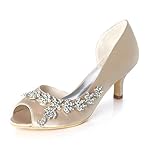 ZXMTYB Wedding Heels Peep Toe Wedding Shoes for Bride High Heels Rhinestones Bridal Shoes Satin Evening Party Prom Dress…